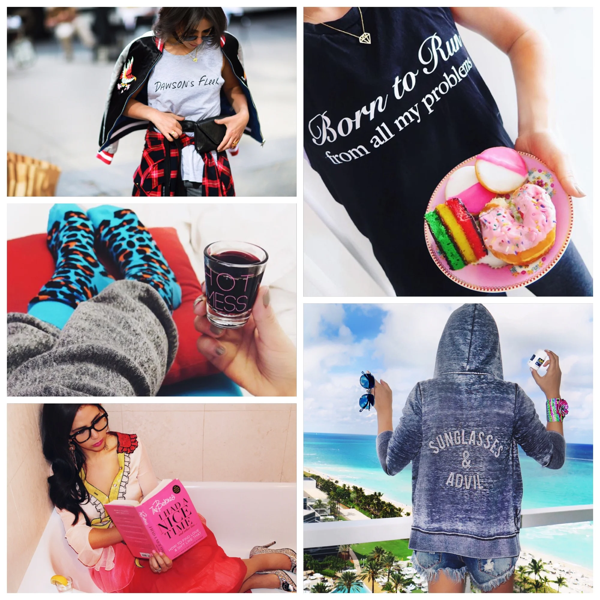 My funny bone tends to get masked by the flat images I work so hard to curate for Instagram or the passionately written blog posts where I try to convince you that you cannot live another day without a jeweled body piece. That's why I was incredibly excited when Betches approached me to join the Betches Clique. In case you've been living under a rock, Betches is the hugely popular (as in 4.2 million Instagram followers) digital space catered to women with a sense of humor. Famous for blush-worthy, unapologetically snarky posts, Betches always keeps it real and keeps us on the floor laughing. Hopefully the swag they send me from Shop Betches (the Betches retail division offering clothes, accessories, and decor "not for the easily offended"), combined with my charming styling skills will allow you to see a newer, truer side of me. As long as it's still taken through a flattering lens and sent through 7 filters. Kidding. Kind of.