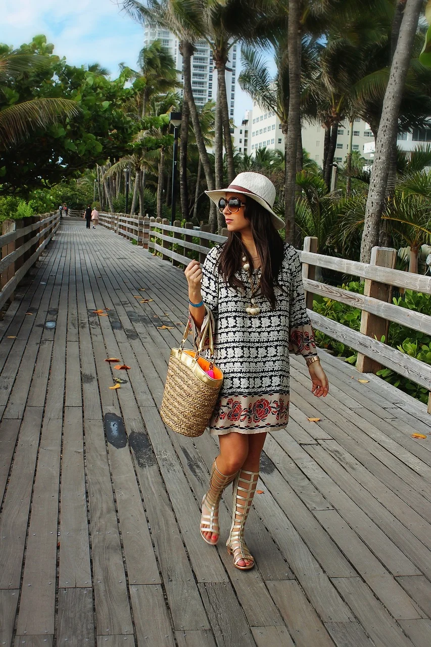 In my last post I mentioned that I wasn't sure if the gladiator trend would work on my 5'2" pregnant frame. I decided to take these Stuart Weitzman's for a spin while on vacation for Passover in Miami. They are actually insanely comfortable...I spent hours walking the boardwalk in them throughout the week! Of course I think they'd look better if I had Amazonian supermodel legs, but I'm not going to let that stop me from gladiating...if Kourtney Kardashian can do it, why can't I? This is one fierce trend! Just make sure to stay in shaded areas as these sandals can lead to some absurd tan-lines. If you happen to live in the Fort Worth, Texas area (my hometown), these gladiators are available for special order at Stanley Eisenman Shoes aka my personal shoe heaven.