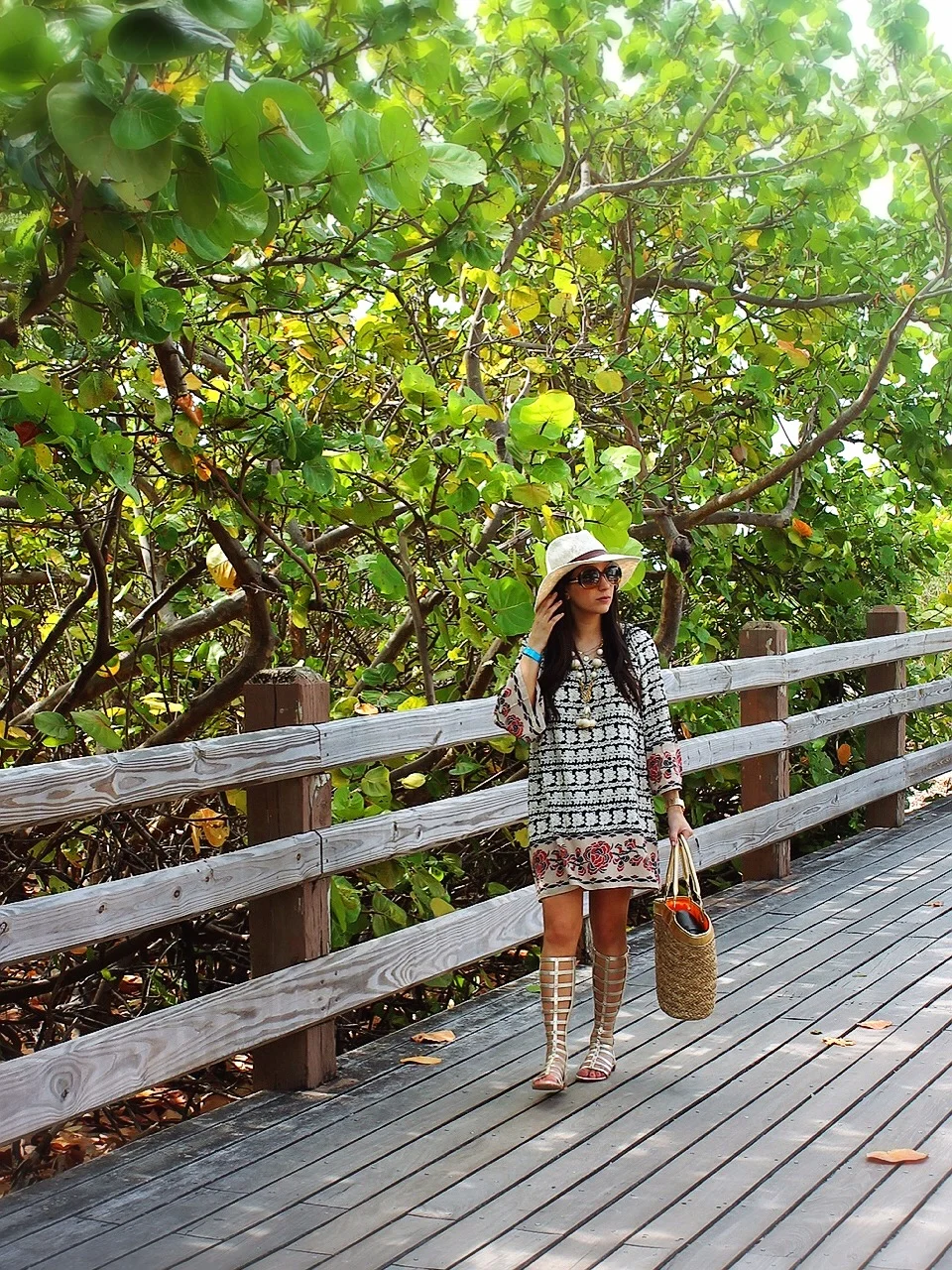 Dress: Pixie Market, Hat: ASOS (similar), Sunglasses: Balenciaga, Necklace: Aerin Erickson Beamon, Bag: free gift from Victoria's Secret (seriously!), Sandals: Stuart Weitzman