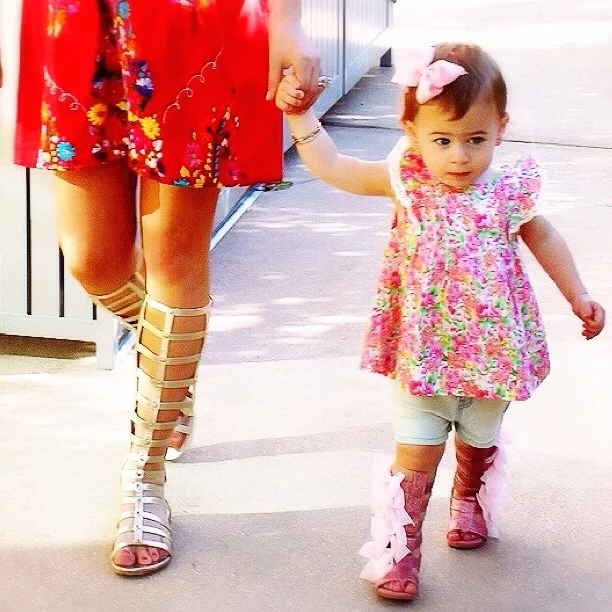 Apparently you're never too young to gladiate. How precious are these pink glitter gladiators with chiffon bows from Joy Folie? My daughter didn't want to take them off. I have a feeling she'll be LIVING in them this summer!