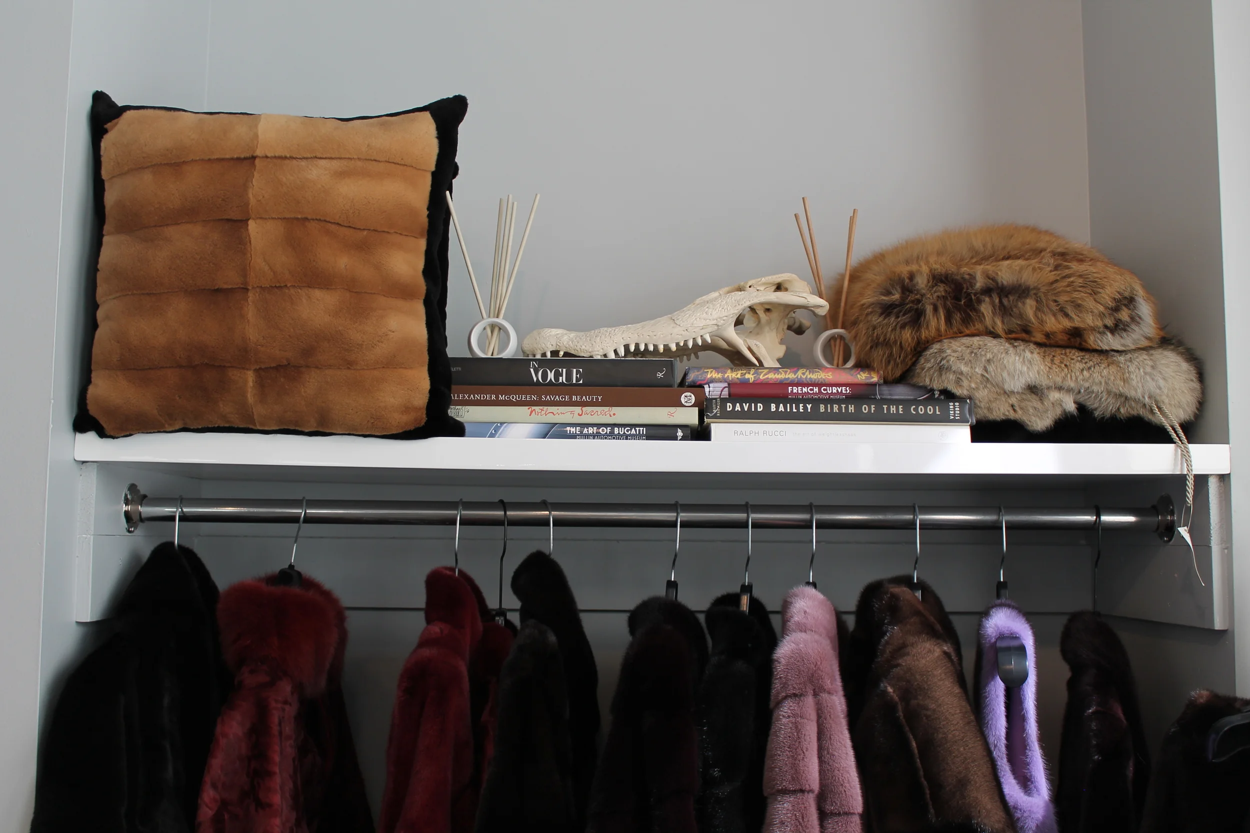 143 West 29th street may not appear outwardly glamorous, but take the elevator up to the 8th floor and you'll land in the mink-lined lap of luxury. It was a privilege to be invited to visit the Pologeorgis showroom where chic couches are accessorized with luscious fur pillows and oversized fox hats are just the standard work attire. Pologeorgis Furs has been recognized for their "tradition of quality and unparalleled craftsmanship" since their founding in the 1960s. In addition to their own brand, they have produced fur collections for Michael Kors (Remember that INSANE blue camo mink coat!?! Yup, that was Pologeorgis!!), Ralph Rucci, and Zac Posen, to name just a few. The company functions as an almost entirely in-house operation. Directly behind the beautiful showroom is an on-site factory where the fabulous furs are designed and manufactured.