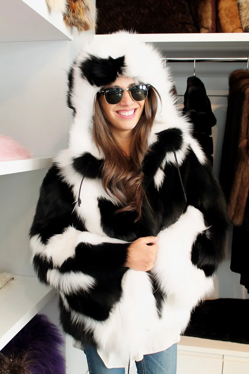 Other Pologeorgis favorites include a western-inspired full shearling poncho (perfect for Aspen), a lavender longline shearling vest that Michael Kors showed for Resort, and a fluffy black and white hooded jacket. At the end of the day, I would be happy in any and all of these pieces, but I had to go with my gut instinct. I'll be galavanting around in my foxy blue green vest! Check back for the many ways I style my new fave fur!